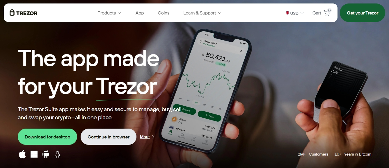 Every action, from sending crypto to installing blockchain apps, requires physical confirmation on your Trezor device. This design dramatically reduces the risk of hacking, phishing, or malware attacks.